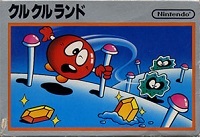 FC『クルクルランド』です。ステージをタイトル通りクルクル動いて金塊を見つけ出し、隠された絵を完成させる面クリア型アクションゲーム。プレイヤーキャラクターのグルッピーですが、何もしなければ直進し、十字キーを押すとその方向に手を出し、ポスト(画面上に設置されているポイント)をつかんで回転するという動きをします。なので、進みたい方向にキーを押しても思った通りに曲がってくれません。筆者は裸のソフトで購入したため、この操作方法がわからないままプレイしてました。後に知って衝撃を受けたなあ……。