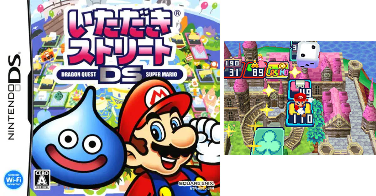 本作のタイトル、いただきストリート「DS」は、対応機種である「ニンテンドーDS」と「DRAGON QUEST」と「SUPER MARIO」の頭文字をとったダブルミーニングになっています。