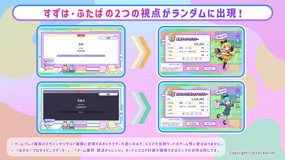 「めざせ!プロタイピングゲーマー」、「ゲーム業界 就活チャレンジ」、「すずはとふたばのアルバイトタイム」、「スコアアタック」の4モードに、