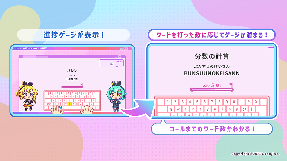 ・「タイピング練習」モードのタイピングパートに進捗表示を追加