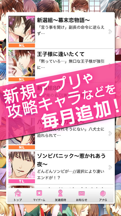 複数の恋愛シュミレーションゲームが遊べる「あなカレ」